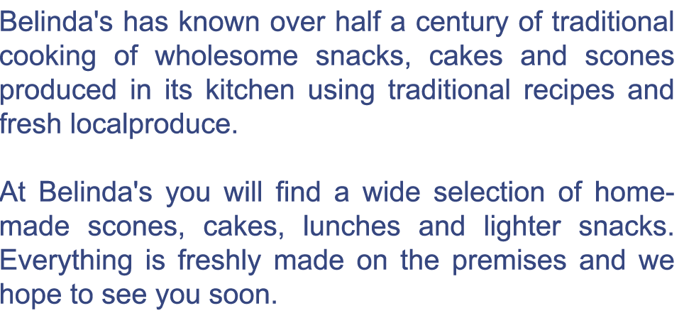 Belinda's has known over a century of traditional cooking of wholesome meals, cakes and scones produced in its kitchen using traditional recipes and fresh local produce, bringing you some of the finest baking in Sussex. And although its has a much more modern twist these days we still see those traditional cakes and scones as the heart & soul of our business.